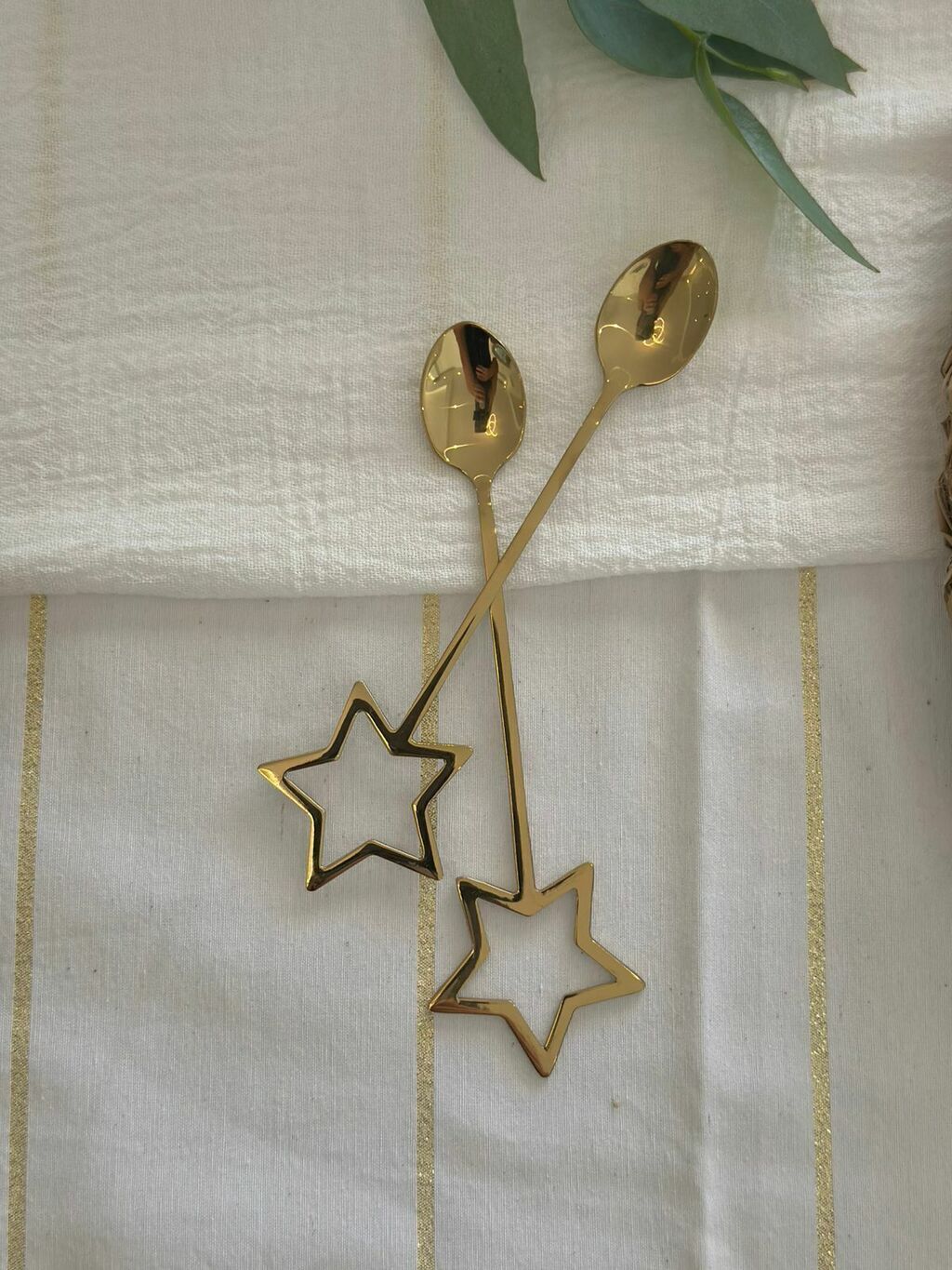 Características: - Material: Acero inoxidable con acabado dorado - Medidas: 15 cm de largo - Apto para lavavajillas: Sí - Línea de diseño: Estrella - Origen: China